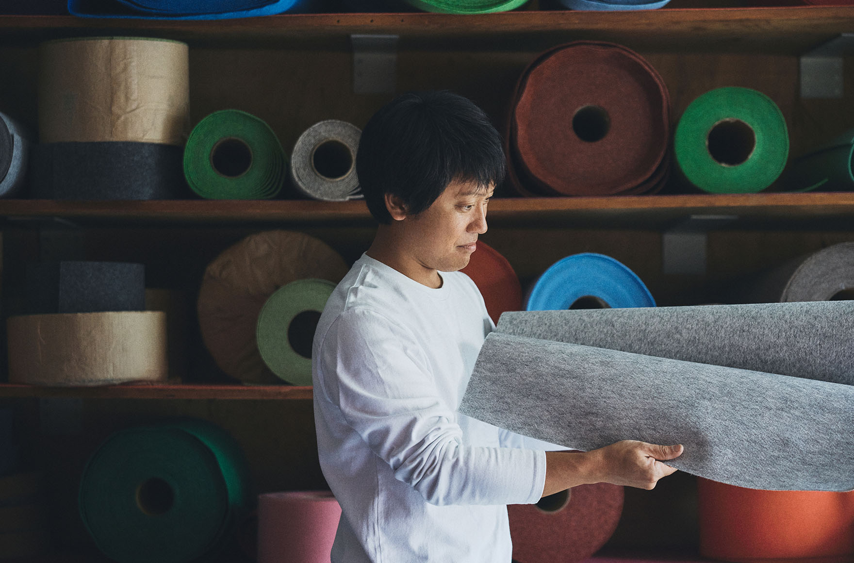現在、イベント施工は月に20〜30件をこなしています。依頼が入るのは、早くて2カ月〜1カ月前。小さい規模の場合は、2週間前に連絡が来ることもあります。現場の図面に使いたい材料やつくりたいイメージが書き込まれて届くので、それに合わせて材料を発注し、作業員を手配します。オフィスなどの一般内装と違うのは、施工当日に搬入を済ませて、はじめて現場を確認できることです。事前にお客様からいただく情報で想定はしているものの、用意したテープで大丈夫かどうかを実際の現場で確認します。問題がなければ、床施工に入りますが、あとは時間との戦いです。イベントは開始時間が決まっているため、施工が遅れるわけにはいきません。また、床施工を最初に行うことが多い展示会と違って、造作工事や電気工事が一緒に入ることもあるので、他の企業と段取りを話し合いながら効率よく進めることも重要です。そうして短い時間の中でも、現場をキレイにしっかり収める。「現場ごとのベスト」を尽くすことが、次の仕事につながっていると思っています。