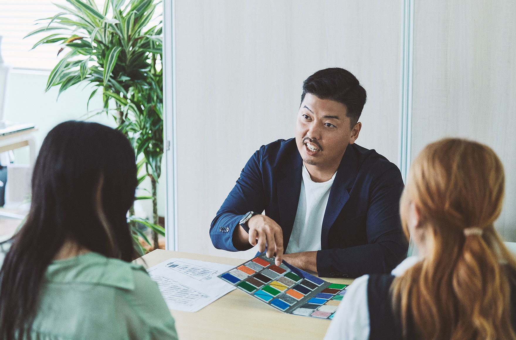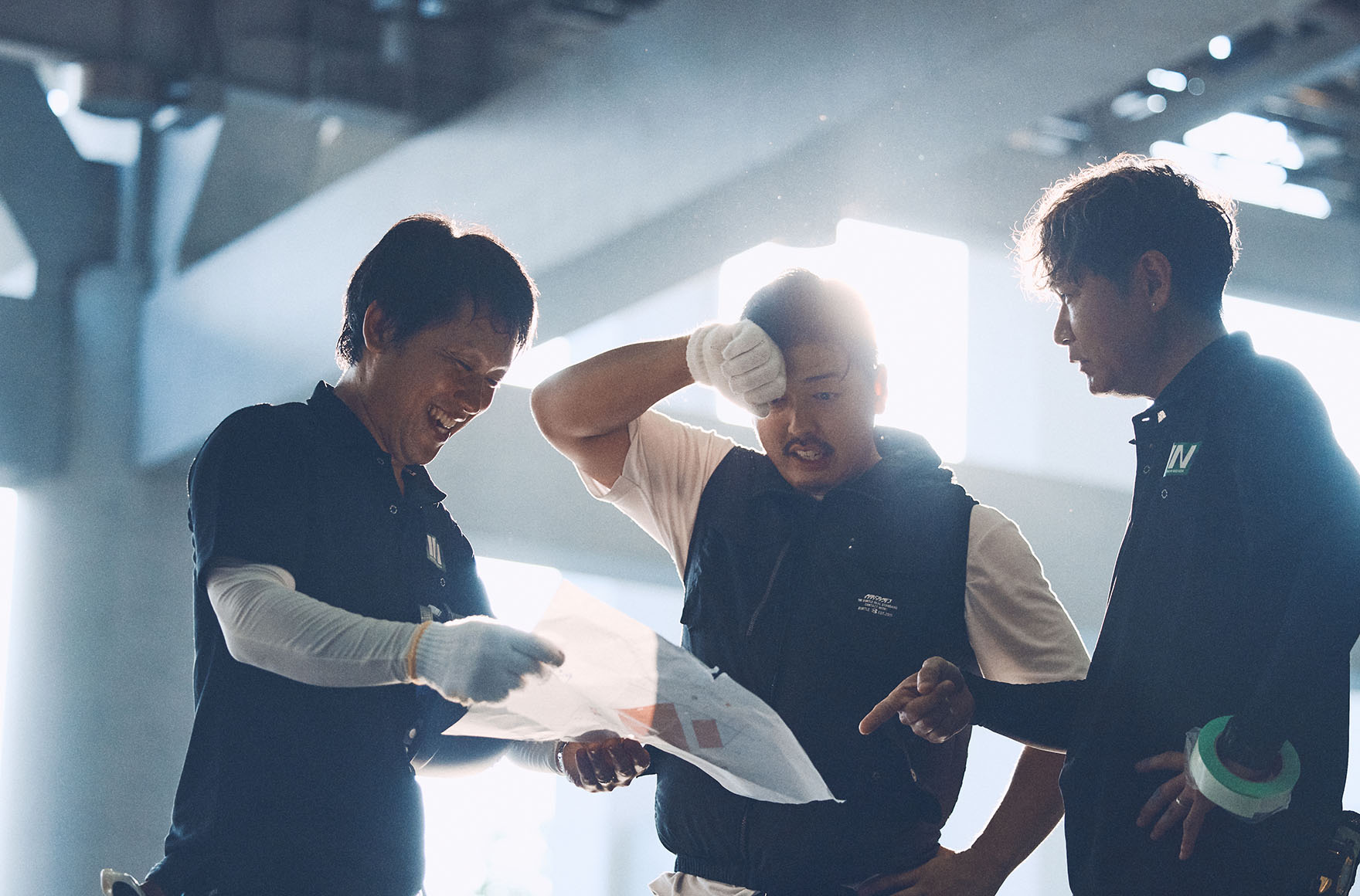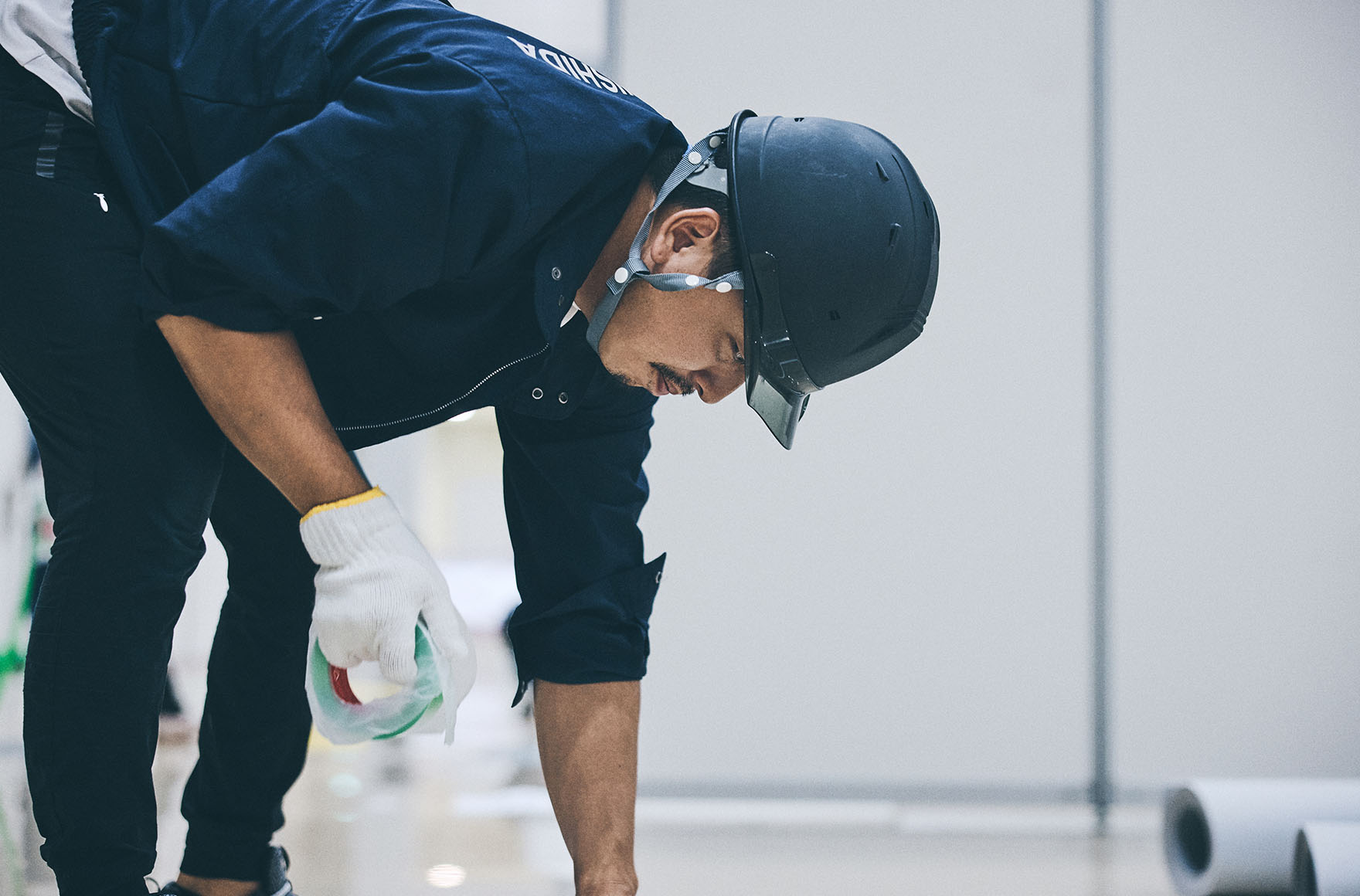 業務内容は、材料や外注さんの手配から始まり、施工当日には会場に材料を搬入し、床の施工をして、展示会終了後、速やかに撤去するという流れになります。営業ではあるけれど、クライアント対応だけでなく、施工現場にも足を運び、現場を監督するのが、インテリアニシダの強みです。現場の状況によって想定と変わる部分が出てくることもありますし、営業が行くことでクライアントとの齟齬を少なくして現場をスムーズに収めることができます。クライアントだけでなく、職人さんや作業スタッフとより良いコミュニケーションをとることも心がけています。職人さんたちの気分を上げることで、現場の効率も上がっていくんです。最近では、大規模な展示会は若手に任せて、自分自身はポップアップイベントなど小規模な展示会に行くようにしています。何百社が参加するような展示会は、大人数をかけて施工するので、サポートし合える状況がありますが、ポップアップでは人数も少なく、クライアントと密にやり取りする必要があるためです。