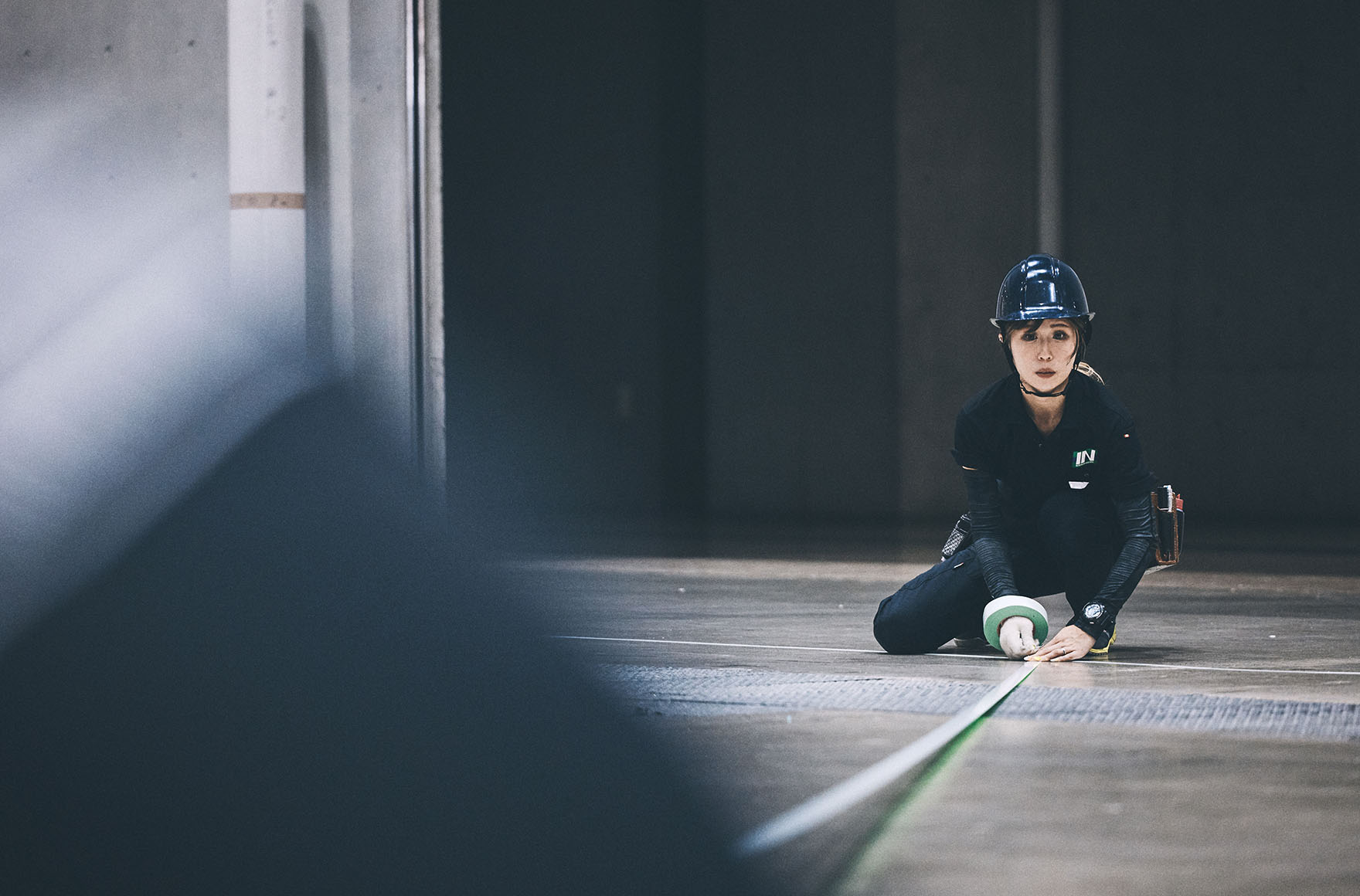 今までで特に上手くいった現場は、ないです…というのも、「上手くいくのが当たり前」だから。先輩から何度も言われて染み付いた考え方です。「現場ごとのベスト」を実現するというMISSIONも、常に言われてきたことなので、すでに根底に流れていると思います。現場ごとのベストで応えながら、いずれはモーターサイクル系のイベントの床施工をインテリアニシダで独占することが、私の目標です! 会社としては、マタニティフェアやネイルのイベントなど、ターゲット層が女性の現場を私に振ってくれるのですが、実は私はバイクが大好きなので、モーターサイクルの展示会が、いちばんモチベーションが上がります(笑)。そういう現場を増やすことと、新入社員の女性が定着してくれること。それが目下の目標です。